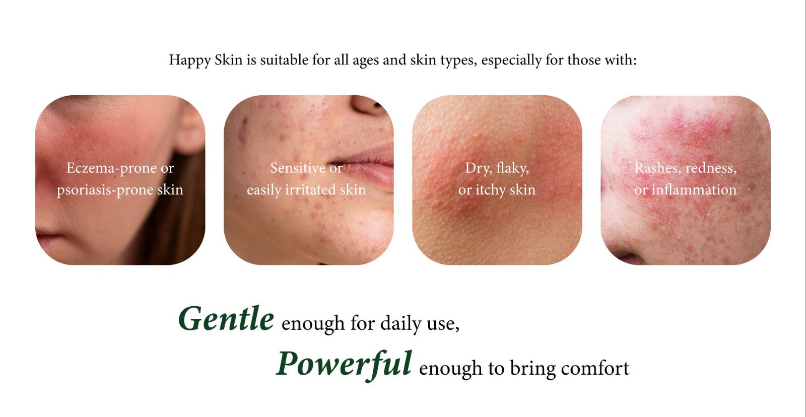 Happy Skin is suitable for all ages and skin types, especially for those with: